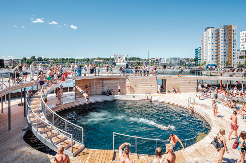 El Baño Portuario es una extensión del plan de desarrollo actual de BIG para el nuevo barrio ubicado frente al mar de Aarhus, llamado O4. El proyecto es similar al primer baño portuario de BIG en Copenhague, que desde 2002 ha ayudado a definir la capital danesa como una de las ciudades con mejor habitabilidad del mundo. El Baño Portuario Aarhus y el Baño de Playa contiguo ofrecen nuevas formas para que el público disfrute del agua en todas las estaciones. El baño zigzaguea suavemente en la isla, se extiende hasta el fondo del puerto y vuelve otra vez.