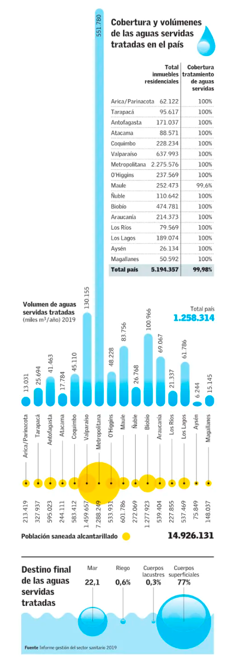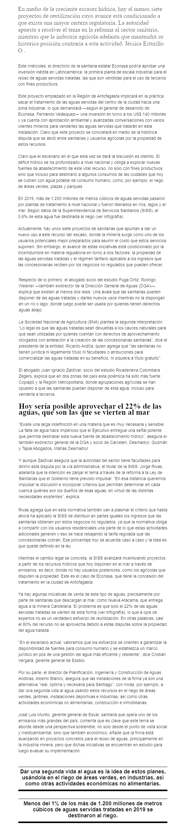 Disputa entre sanitarias y regantes por el reúso de aguas servidas tratadas Impide aprovechar casi el 80% de los recursos disponibles