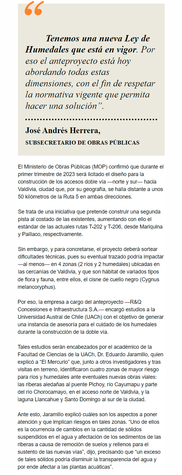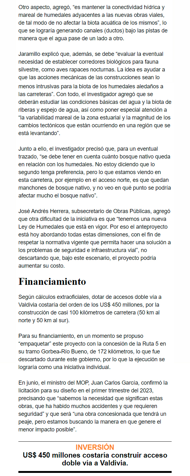 EL MERCURIO – Datos del anteproyecto detalla cuáles podrían ser las zonas de mayor impacto ante un eventual trazado, en áreas donde abundan los cuerpos de agua.