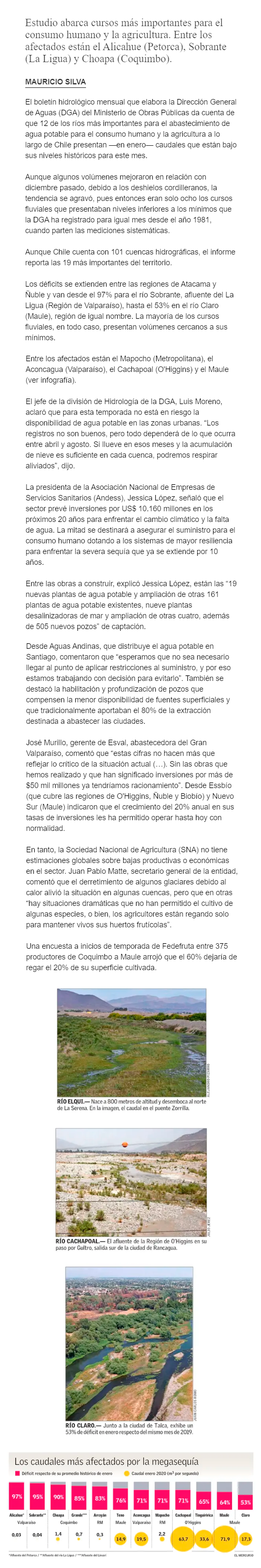 EL MERCURIO – Estudio abarca cursos más importantes para el consumo humano y la agricultura