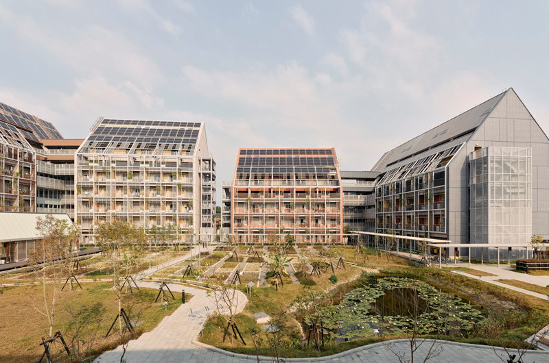 Para Taisugar Circular Village en Taiwán, el estudio de diseño Bio-architecture Formosana se centró en la modularidad para agilizar el montaje y desmontaje y simplificar la base de datos del banco de materiales. El proyecto cuenta con sistemas de energía renovable, servicios compartidos y una serie de sistemas de producción de alimentos, incluida la acuaponía. Al mismo tiempo, el proyecto implementa el modelo de producto como servicio, con ascensor, iluminación, mobiliario y sanitarios alquilados en lugar de comprados. Volviendo hacia los paisajes rurales, Valentino Gareri Architects ha diseñado el proyecto piloto para un modelo de aldea de economía circular. Al estilo de una ciudad jardín, el concepto prevé comunidades de hasta 200 personas con espacios de trabajo y convivencia, con microrredes de agua, energía y un sistema agrícola regenerativo. El proyecto también convertirá materiales inorgánicos en nuevos productos u recursos, de forma similar a los puntos de reutilización de Praga.