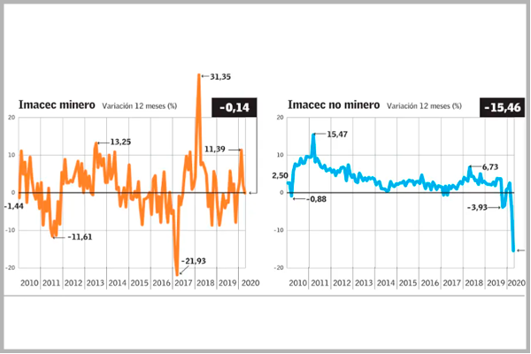 EL MERCURIO – La extensión de las restricciones sanitarias afectó principalmente a los servicios y el comercio, y llevó al mercado a ajustar sus proyecciones a cifras en torno a -15% para mayo.