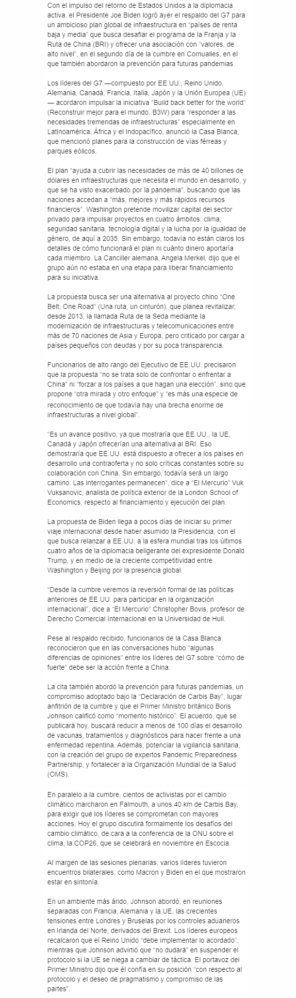 Fuente: El Mercurio, Domingo 13 de Junio de 2021