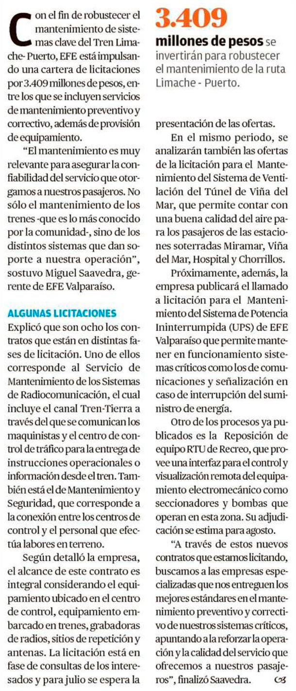 EL MERCURIO DE VALPARAÍSO – Se incluye mantenimiento preventivo y correctivo, entre otros