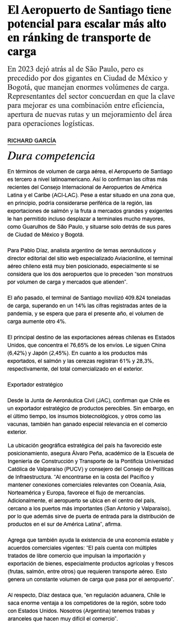 EL MERCURIO – En 2023 dejó atrás al de Sao Paulo, pero es precedido por dos gigantes en Ciudad de México y Bogotá, que manejan enormes volúmenes de carga.