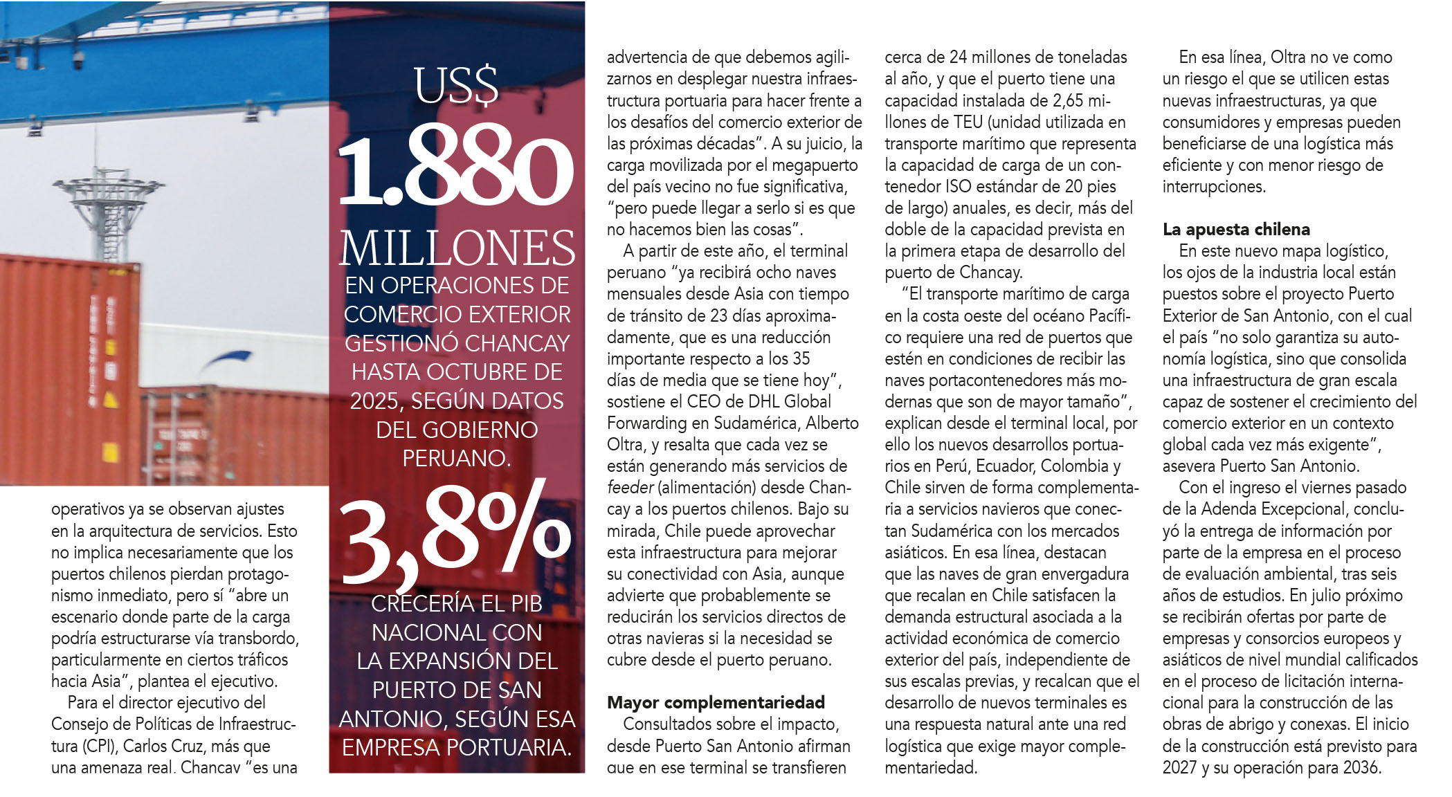 DIARIO FINANCIERO – Si bien la operación del megapuerto peruano, no ha implicado que los terminales chilenos pierdan protagonismo inmediato, si podría reconfigurar las rutas logísticas y sumar presión para acelerar el despliegue de infraestructura local.