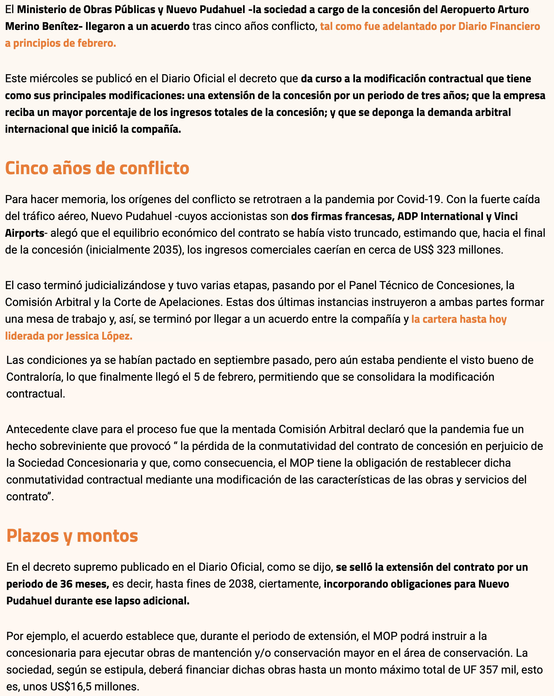 DIARIO FINANCIERO – Además la sociedad concesionaria del principal terminal aéreo del país pasará a quedarse con un 27% de los ingresos comerciales, en comparación con el 22,44% que percibía anteriormente