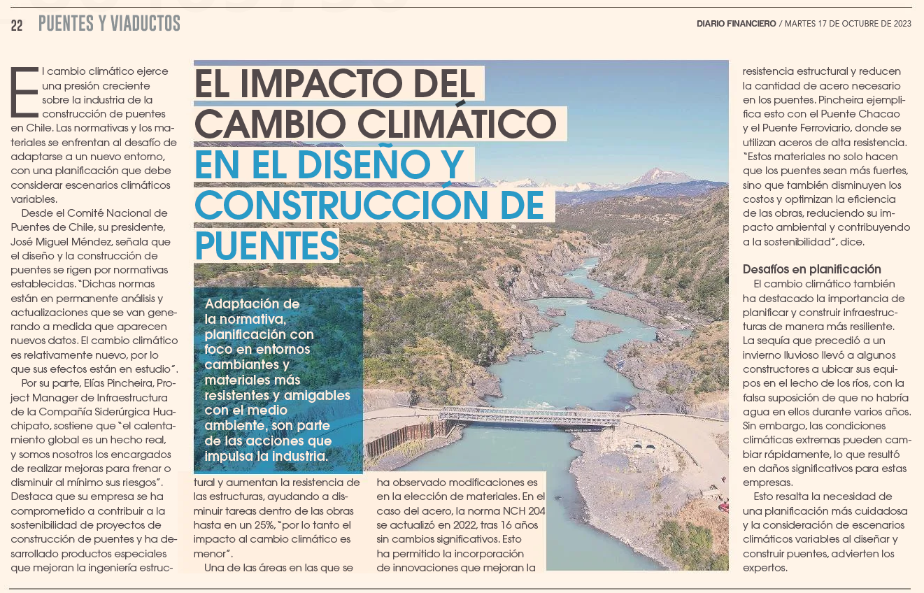 DIARIO FINANCIERO – El cambio climático ejerce una presión creciente sobre la industria de la construcción de puentes en Chile. Las normativas y los materiales se enfrentan al desafío de adaptarse a un nuevo entorno, con una planificación que debe considerar escenarios climáticos variables.