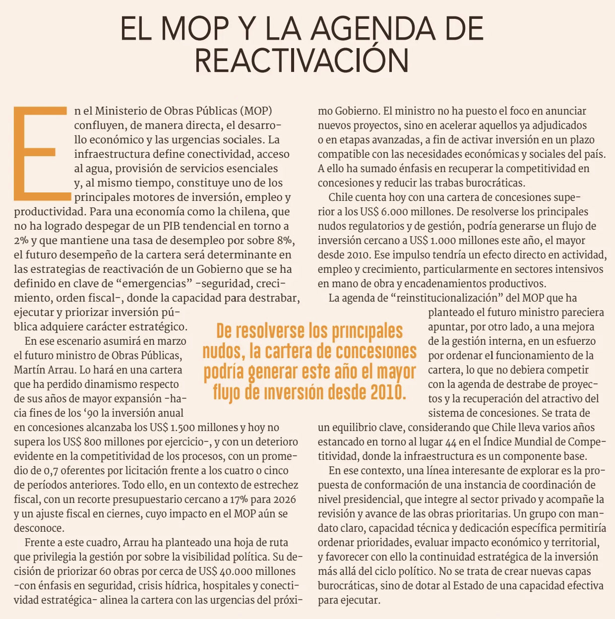 El MOP y la agenda de reactivación