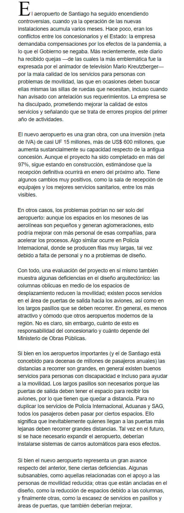 EL MERCURIO – Constituye un gran avance respecto de la anterior concesión, pero presenta deficiencias que deberían poder subsanarse.