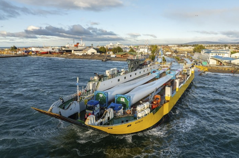 La empresa naviera, con 57 años de presencia en la zona austral de Chile, ejecutó el traslado de las piezas más voluminosas, dos generadores de 100 toneladas cada uno. Asimismo, la operación logística implicó mover hacia Tierra del Fuego seis aspas, ocho tramos de torre, dos hub y dos nacelle, “sin la necesidad de realizar estudios de puentes u otros más complejos para planificar la ruta terrestre”, explicó el ejecutivo.
