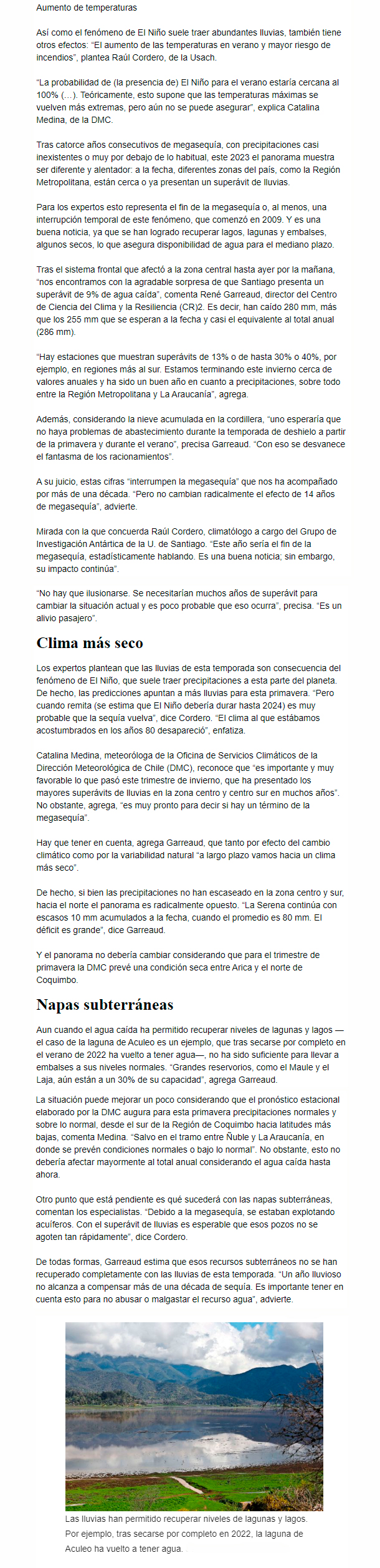 EL MERCURIO – Las precipitaciones han permitido recuperar niveles de lagos y embalses, y acumular nieve para el verano.