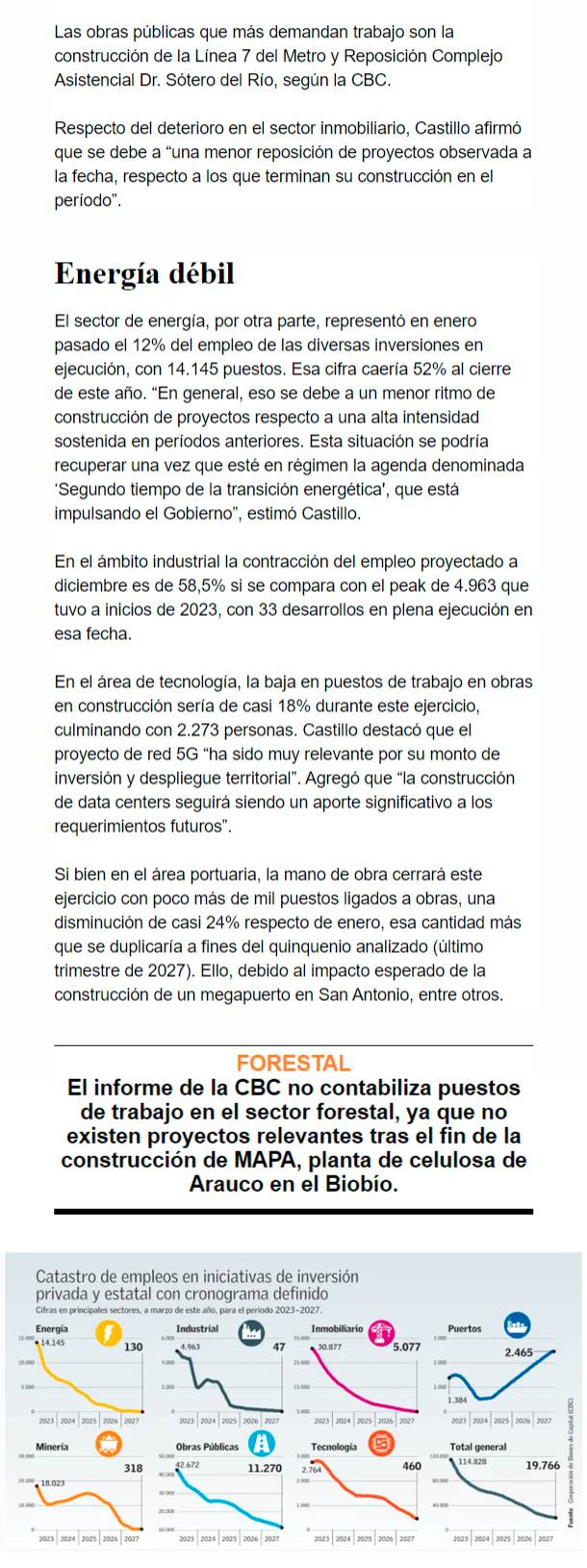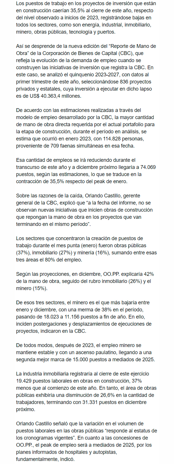 EL MERCURIO – La carencia de iniciativas que repongan los puestos de trabajo de las faenas que terminan su ejecución es la principal razón de la caída.