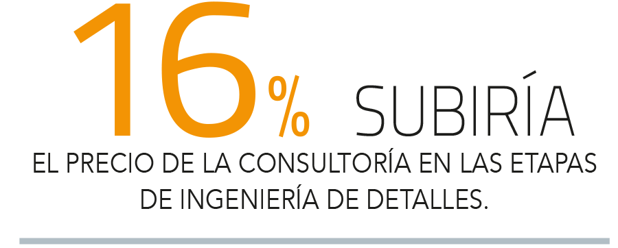 Explica que en la actividad de empresas consultoras el componente principal es el costo en remuneraciones, por lo que prevé que el precio efectivo y final del servicio suba 16% en las etapas de ingeniería de detalles, “produciendo un efecto negativo en los costos de construcción de proyectos”.