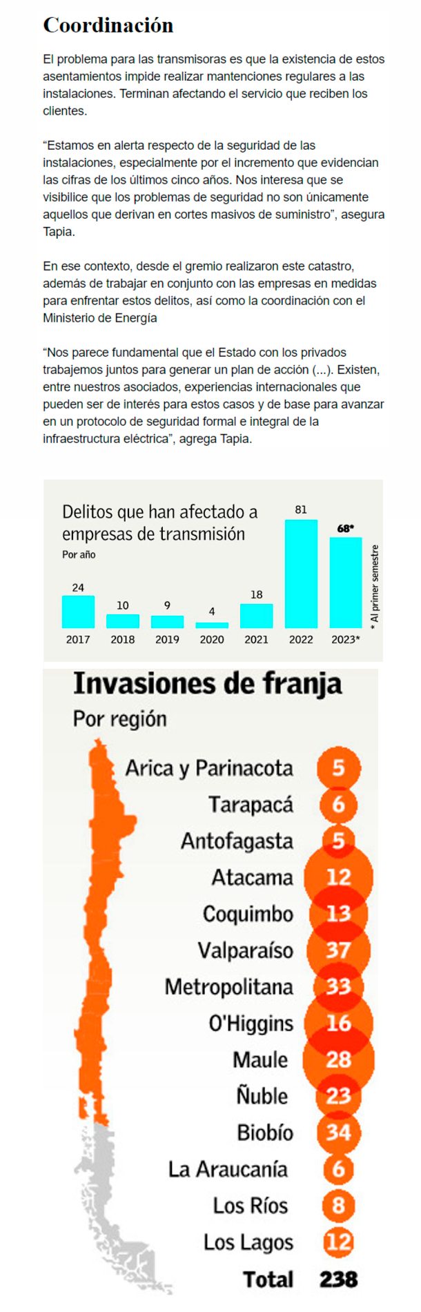 EL MERCURIO – Una de las principales preocupaciones del sector son los atendados a esa infraestructura. La magnitud de los ilícitos no se había visto en las últimas décadas.