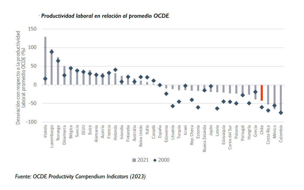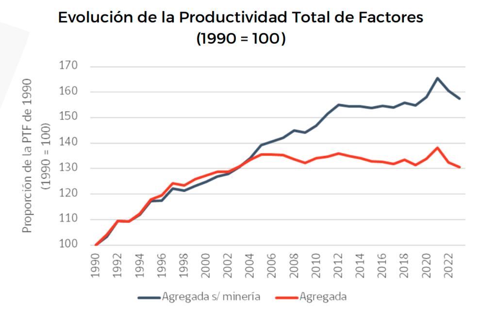- De esta manera, concluye el informe, la productividad se encuentra estancada hace más de una década siendo necesario, por tanto, trabajar constantemente en políticas que busquen eliminar los cuellos de botella que restringen el crecimiento de la productividad, de forma que esta sea un motor del crecimiento económico sostenido, aporte a un desarrollo sustentable y eleve el bienestar de la población.