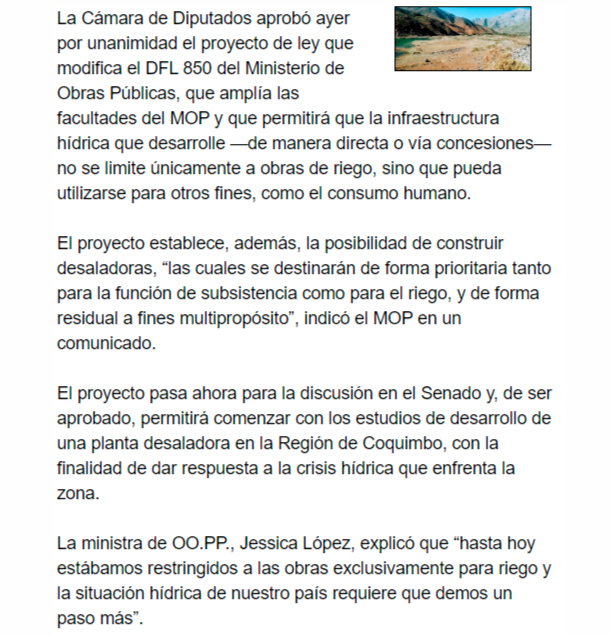 EL MERCURIO – Agiliza opción para obras en la Región de Coquimbo.