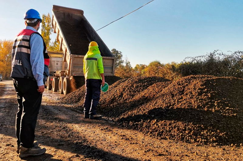 El seremi Javier Parra, de la cartera de Obras Públicas, detalló que “se está trabajando en dos puntos de manera simultánea, en Bulnes y en San Ignacio, para así andar lo más rápido posible, matando el polvo, el barro que se avecina en invierno y entregando mejores condiciones de conectividad”.