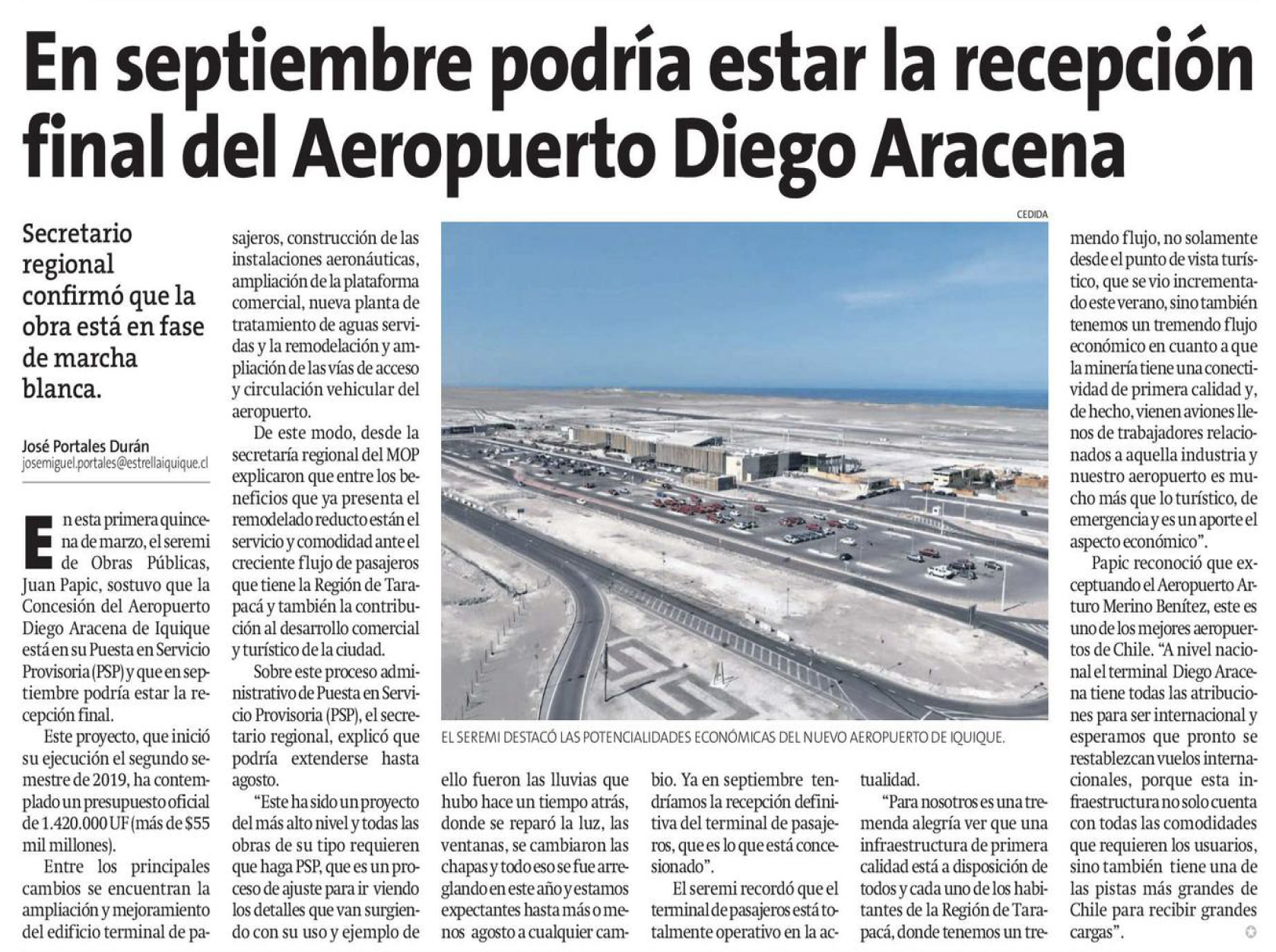 LA ESTRELLA DE IQUIQUE – Secretario regional confirmó que la obra está en fase de marcha blanca.