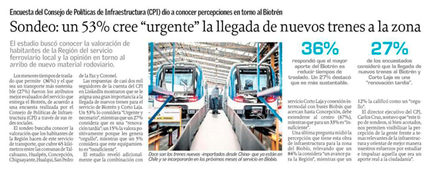 EL SUR DE CONCEPCIÓN – Sondeo: un 53% cree “urgente” la llegada de nuevos trenes a la zona.