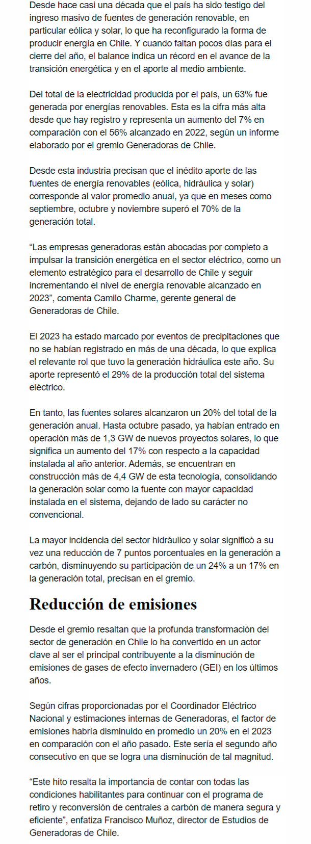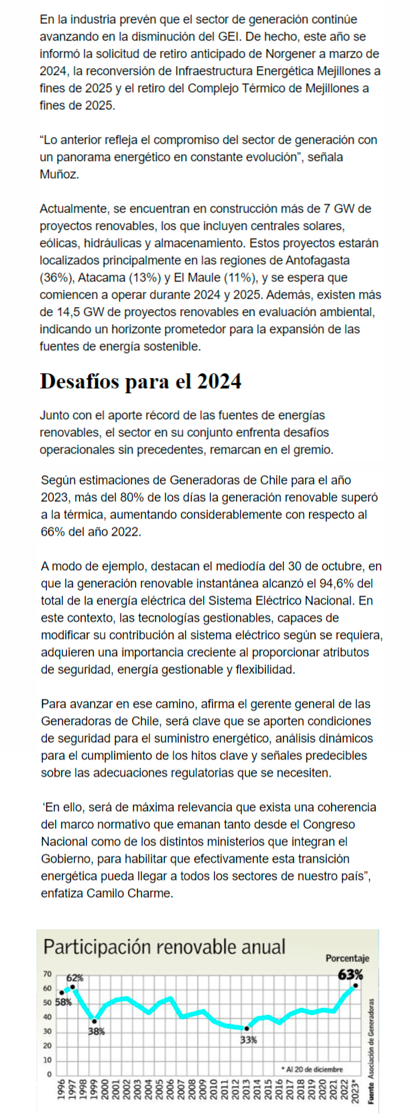 EL MERCURIO – Pese a la producción sin precedentes, en el sector apuntan a que durante el 2024 será necesario abordar desafíos operacionales, que abarcan un uso y planificación eficiente del sistema de transmisión, como también señales regulatorias claras.