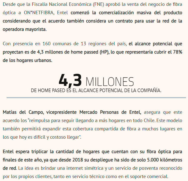DIARIO FINANCIERO – La empresa está trabajando en la comercialización masiva de su red de internet para llegar a la mayor cantidad de hogares urbanos de Chile