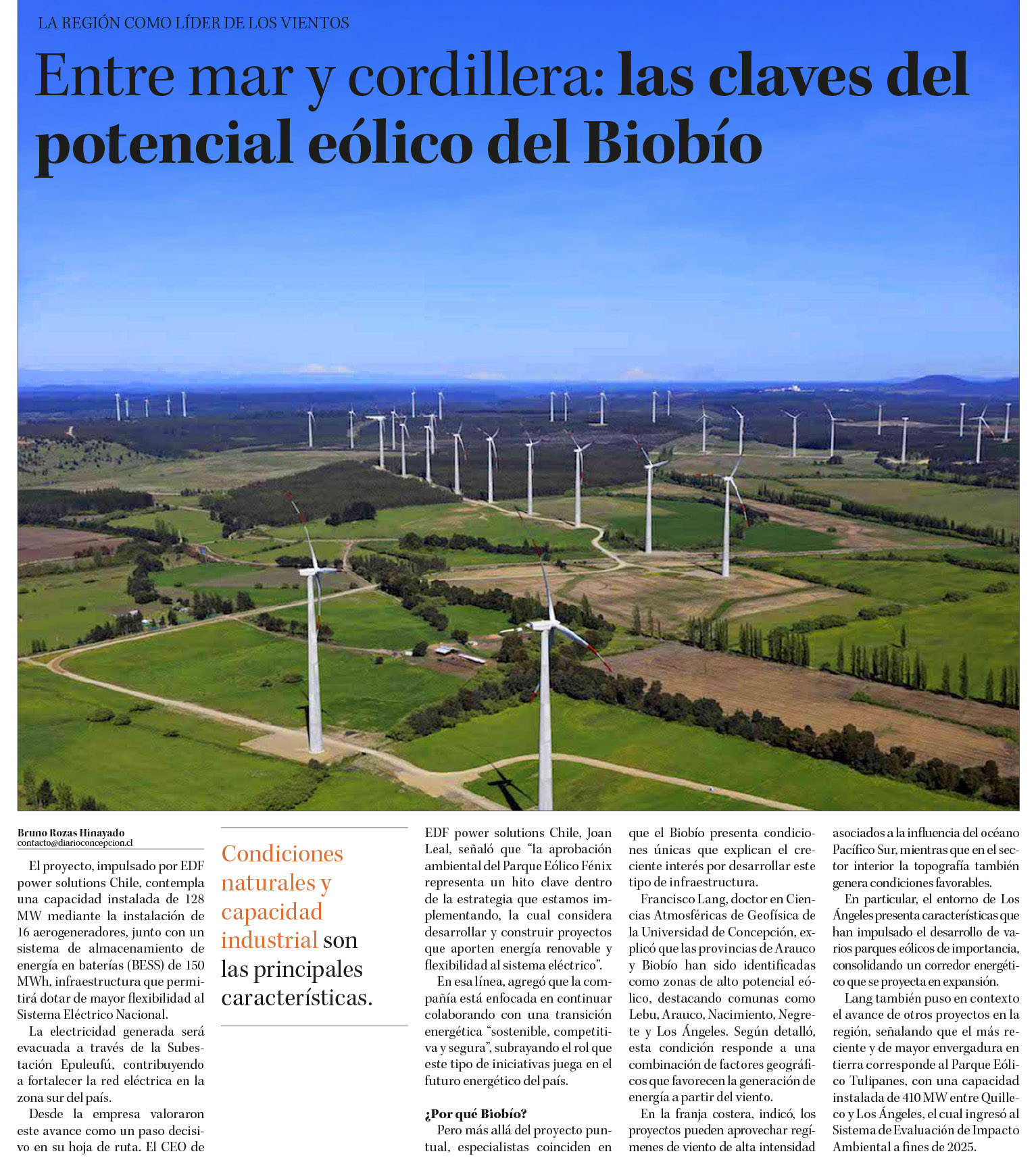 DIARIO CONCEPCIÓN – La electricidad generada será evacuada a través de la Subestación Epuleufú, contribuyendo a fortalecer la red eléctrica en la zona sur del país