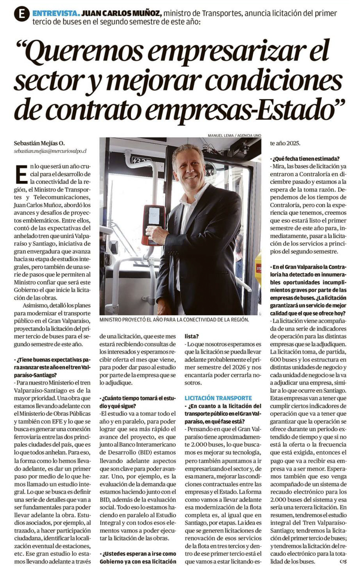EL MERCURIO DE VALPARAÍSO – Ministro de Transportes anuncia licitación del primer tercio de buses en el segundo semestre de este año