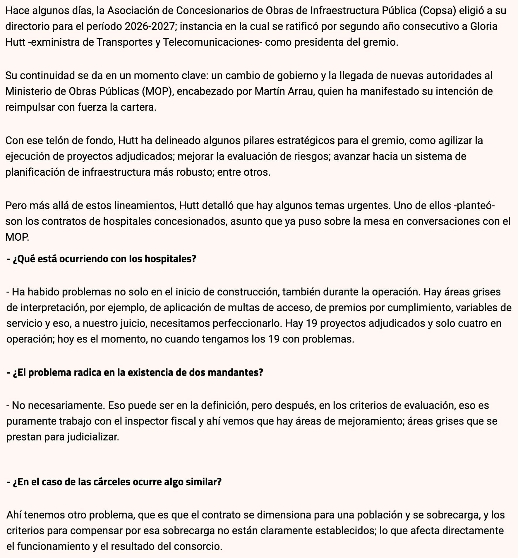 “Es indispensable que lo que implique un riesgo para los ingresos se resuelva antes de implementarlo” Entrevista a Gloria Hutt, presidenta de COPSA