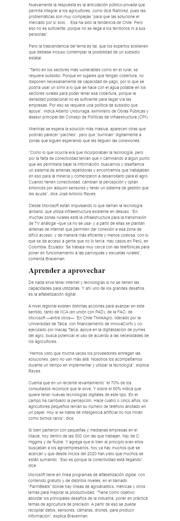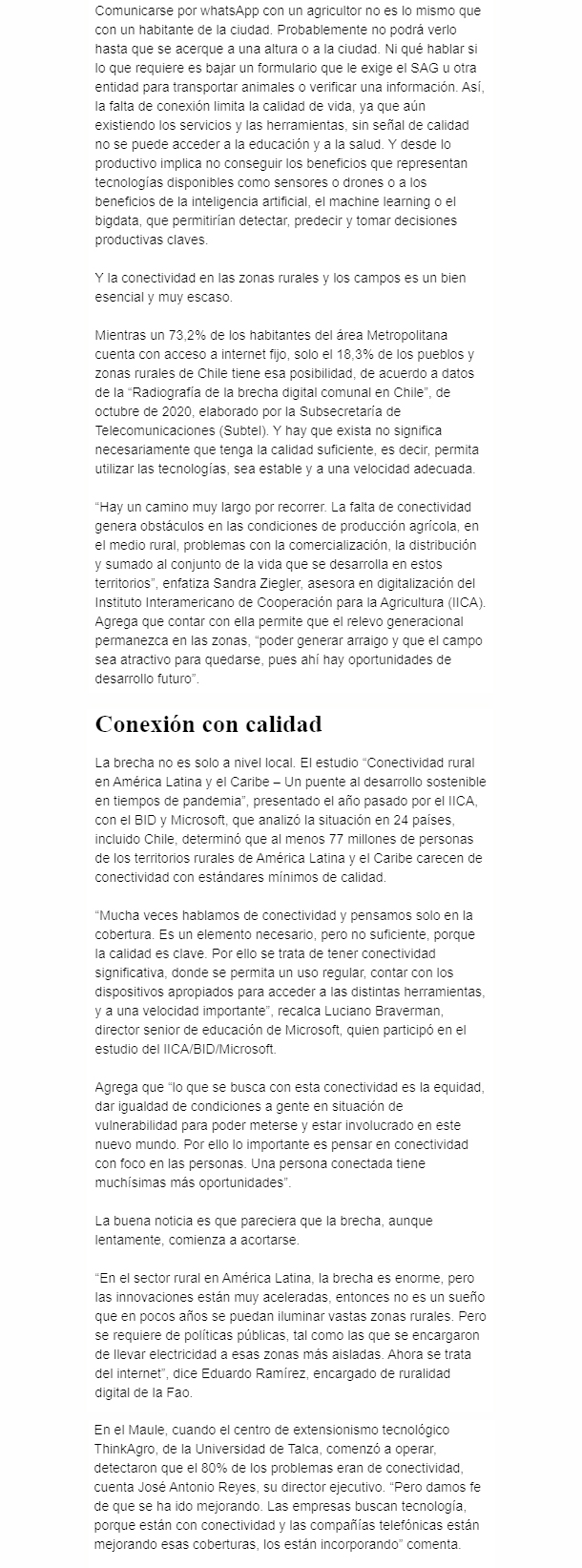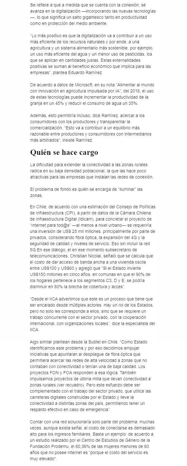 REVISTA DEL CAMPO – EL MERCURIO – 18,3% de los hogares rurales tiene internet fijo, versus el cerca del 70% de las grandes ciudades. Los habitantes rurales quedan fuera de los servicios y de los beneficios de la digitalización, como mejorar productividad y proteger medioambiente.