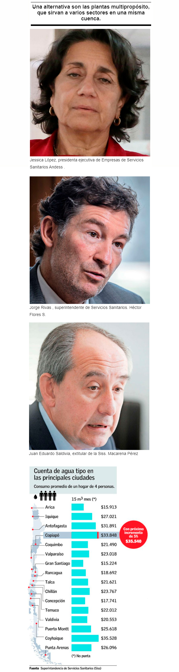 EL MERCURIO – Otras opciones son el reúso de aguas tratadas y aplicar tarifas por bloques de consumo.