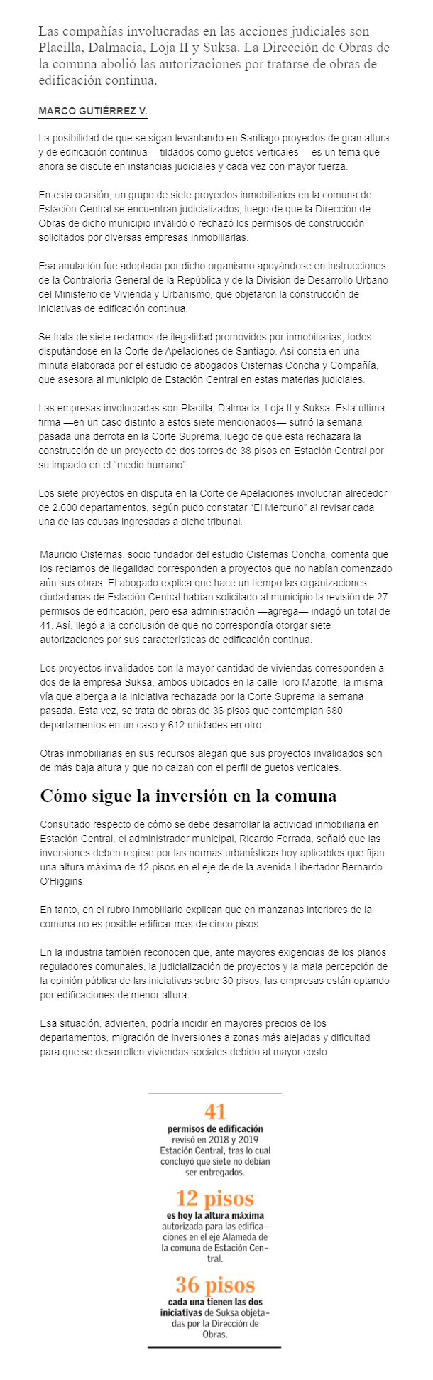 EL MERCURIO – 12 pisos es hoy la altura máxima autorizada para las edificaciones en el eje Alameda de la comuna de Estación Central.