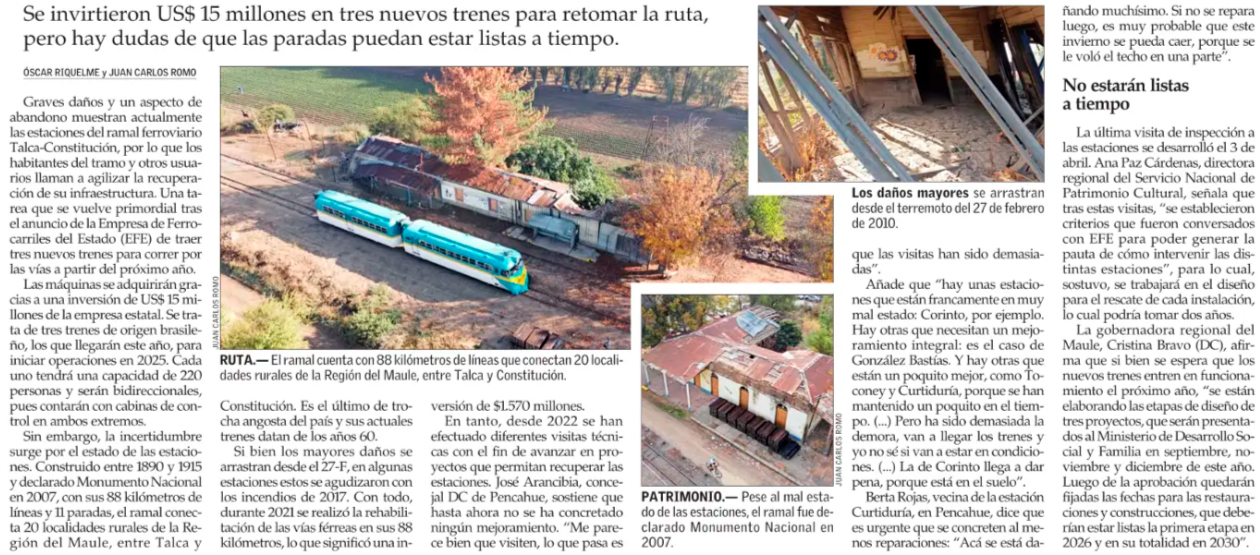 EL MERCURIO – Se invirtieron US$ 15 millones de tres nuevos trenes para retomar la ruta, pero hay dudas de que las paradas puedan estar listas a tiempo