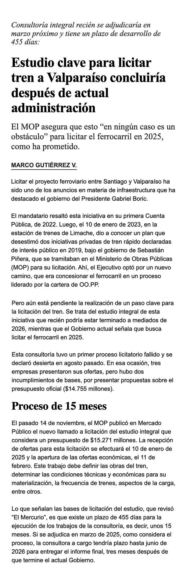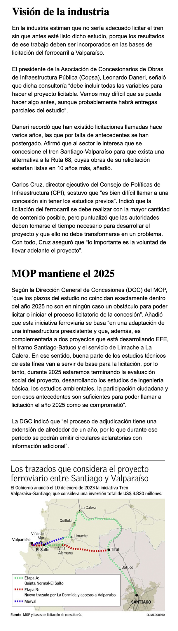 EL MERCURIO – El MOP asegura que esto “en ningún caso es un obstáculo” para licitar el ferrocarril en 2025.