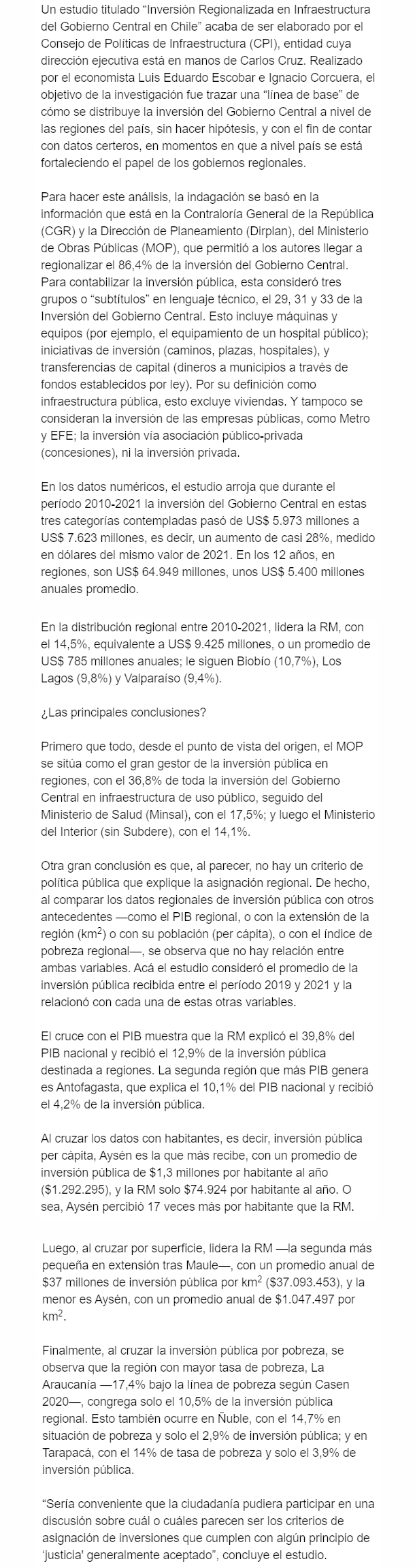 EL MERCURIO – El objetivo fue trazar una línea de base de cómo se distribuye la inversión del Gobierno Central a nivel de las regiones del país.