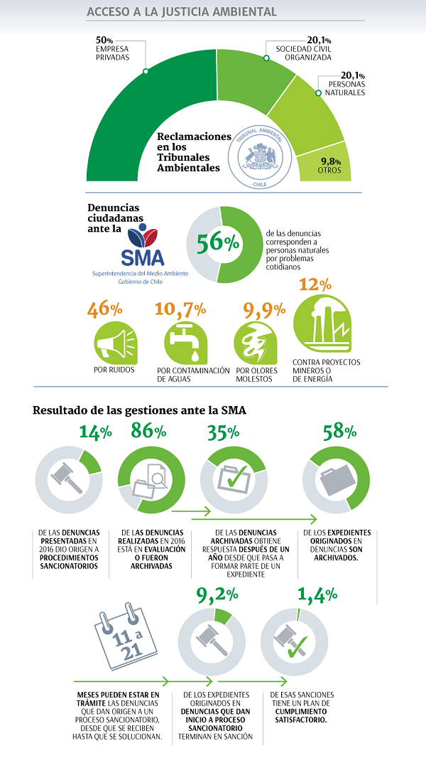 Según las conclusiones de esta investigación, que considera los fallos de los Tribunales Ambientales y lo resuelto por la Corte Suprema vía recursos de casación, la efectividad para oponerse por vía judicial a este tipo de iniciativas y lograr su rechazo es mínima, ya que sólo tres de 106 casos resuetlos han logrado retrotraer proyectos a etapas iniciales y, de ellos, ninguno ha sido ganado por una comunidad indígena. Desde su creación en 2013, han ingresado 184 casos a esta justicia especializada, de los cuales 106 ya han sido resueltos.