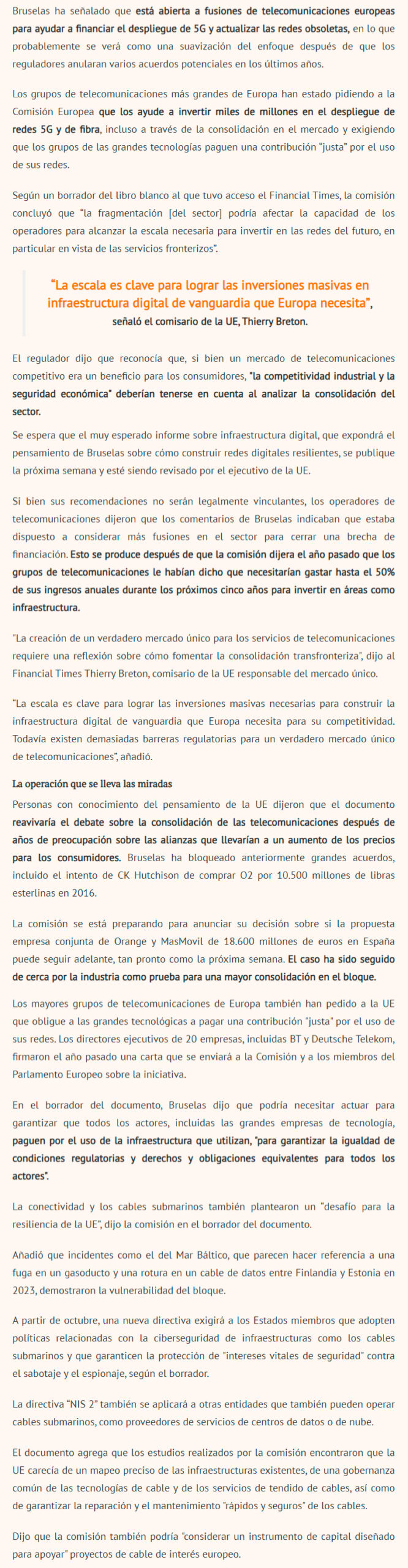 DIARIO FINANCIERO – La escala es clave para lograr las inversiones masivas en infraestructura digital de vanguardia que Europa necesita.