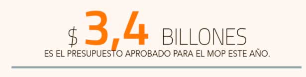 El presupuesto aprobado para el MOP este año es de $ 3,4 billones (millones de millones). Esto significa un aumento de cerca del 33,4% respecto de 2020.