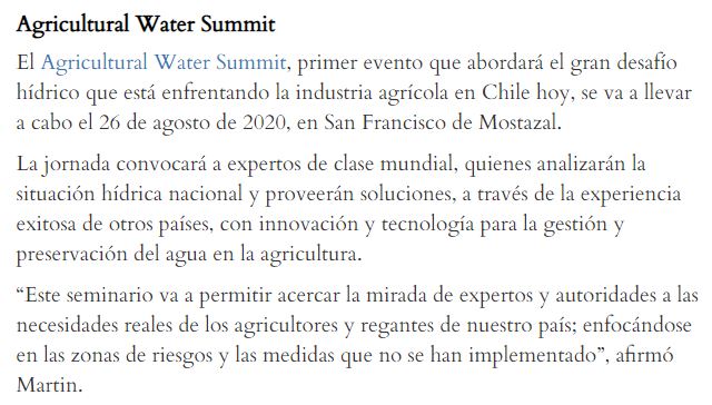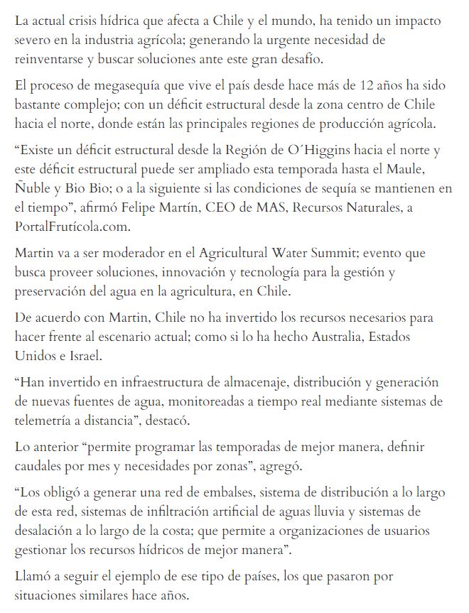 PORTAL FRUTÍCOLA – La actual crisis hídrica que afecta a Chile y el mundo, ha tenido un impacto severo en la industria agrícola; generando la urgente necesidad de reinventarse y buscar soluciones ante este gran desafío.