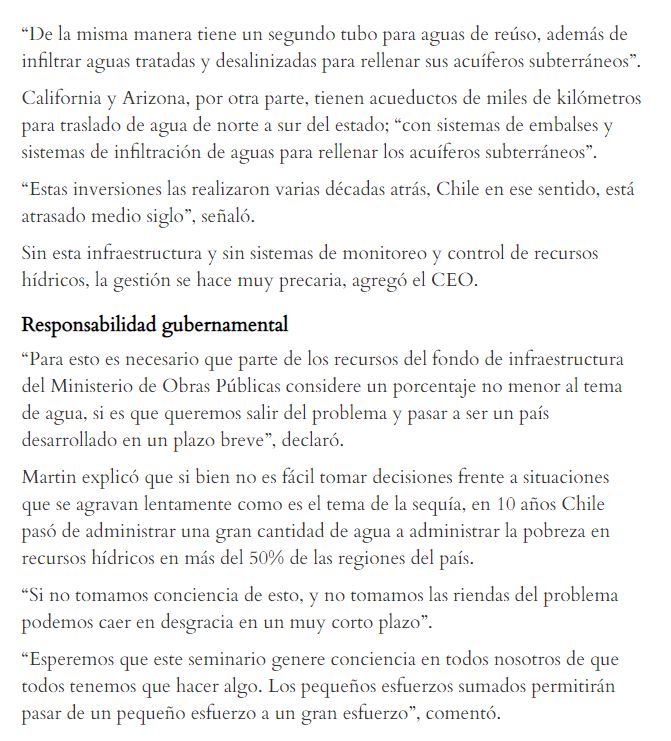 Experto asegura que Chile está atrasado medio siglo en inversión hídrica