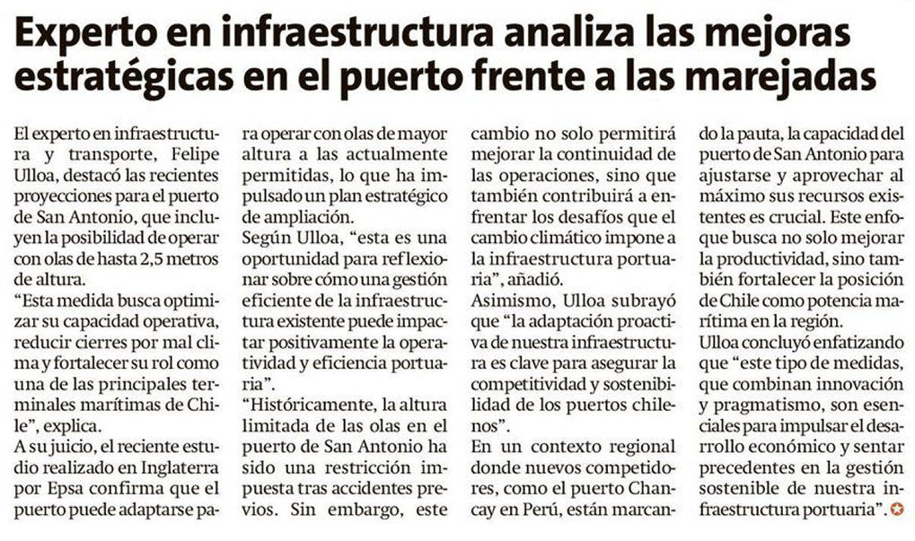 EL LÍDER DE SAN ANTONIO – Felipe Ulloa destacó las recientes proyecciones para el puerto de San Antonio, que incluyen la posibilidad de operar con olas de hasta 2,5 metros de altura