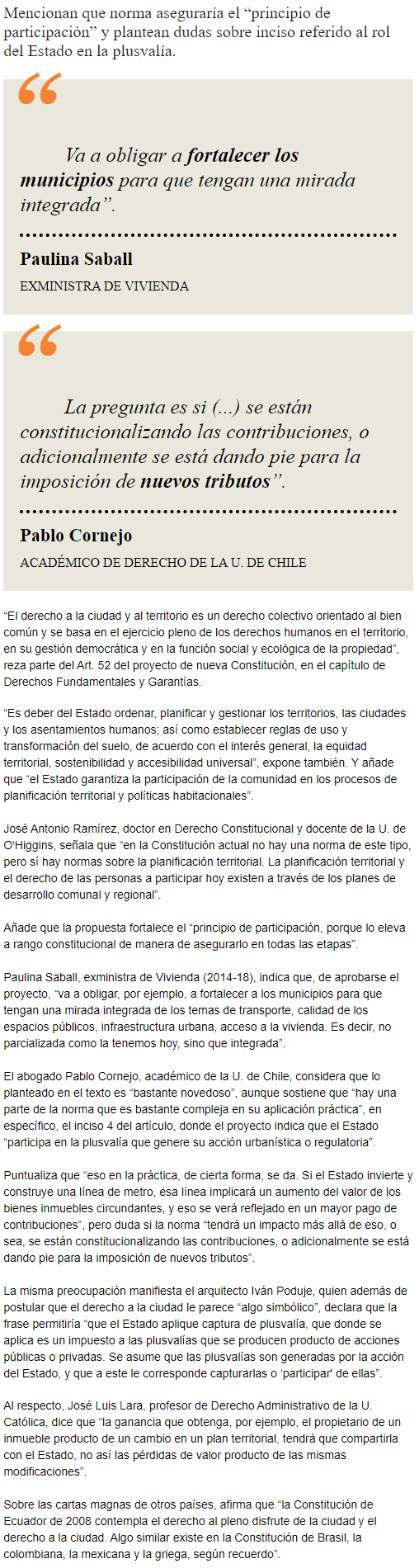 EL MERCURIO – Mencionan que norma aseguraría el “principio de participación” y plantean dudas sobre inciso referido al rol del Estado en la plusvalía.