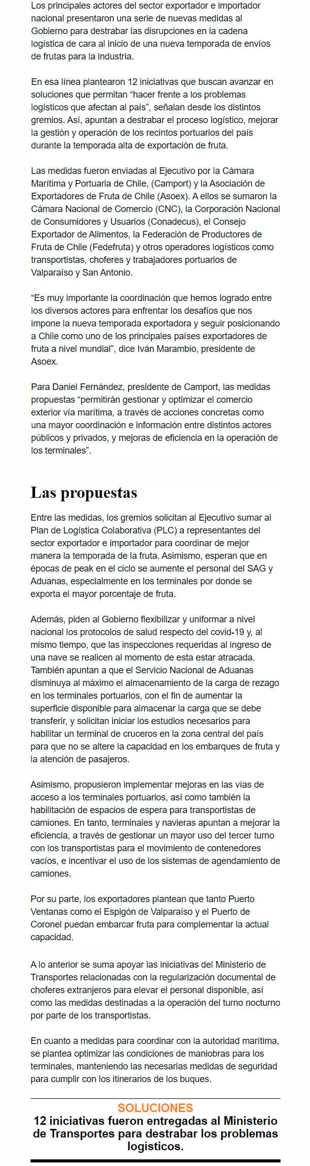 EL MERCURIO – Gremios presentaron una serie de iniciativas para gestionar y optimizar los envíos de frutas en los próximos meses.