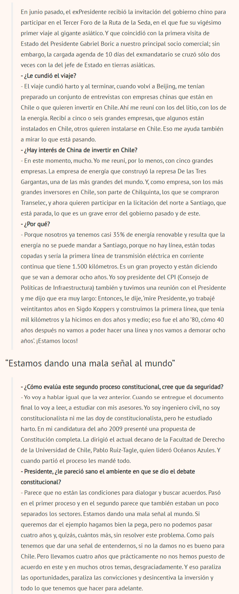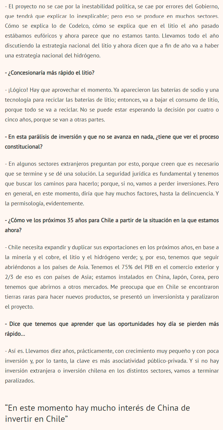 DIARIO FINANCIERO – “En este momento hay mucho interés de China de invertir en Chile”.