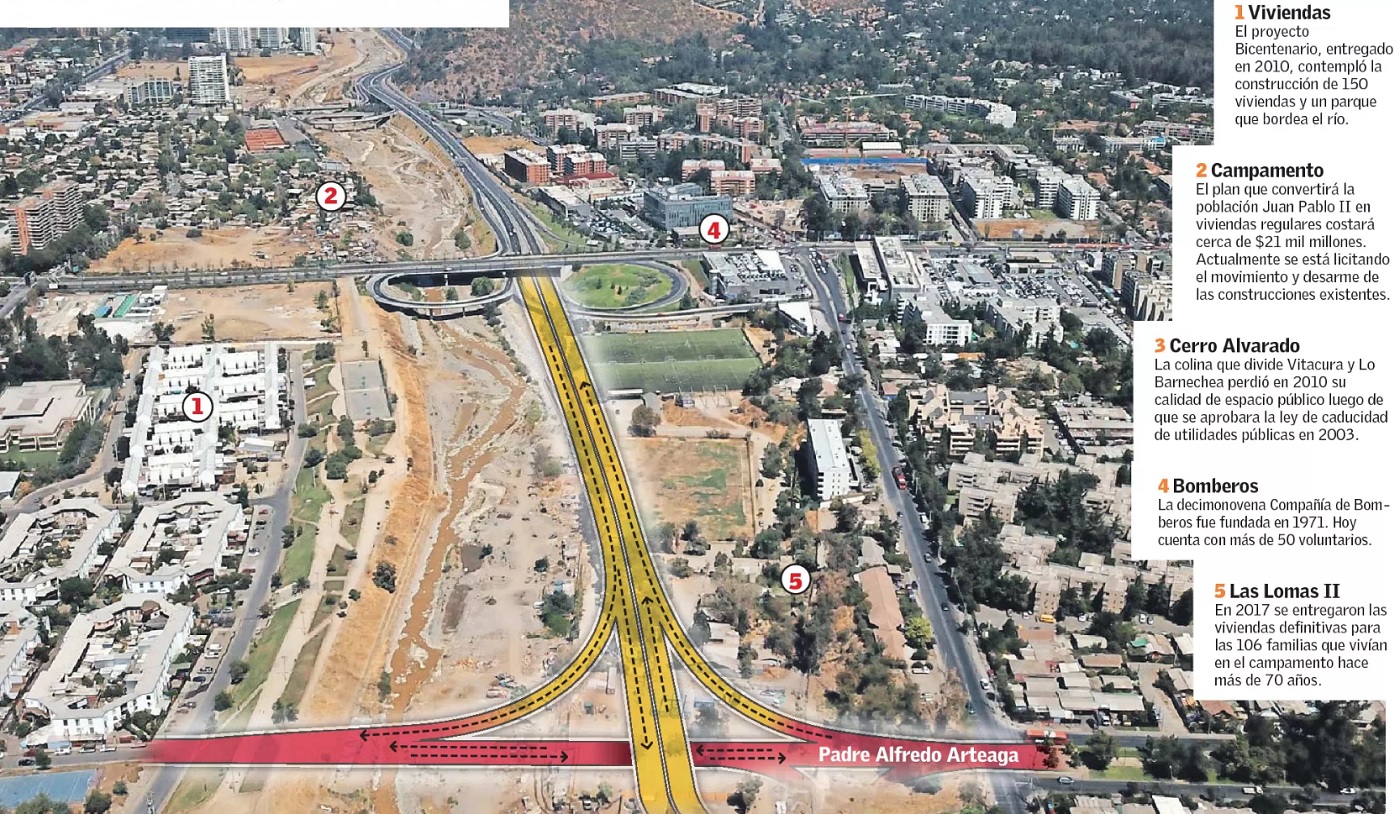 EL MERCURIO – La autopista se alargará 700 metros al oriente llegando hasta la calle Padre Arteaga en Lo Barnechea. Las obras de traslados de servicios ya se iniciaron a la espera de que concluya el proceso de licitación del proyecto que costará 18 millones de dólares.
