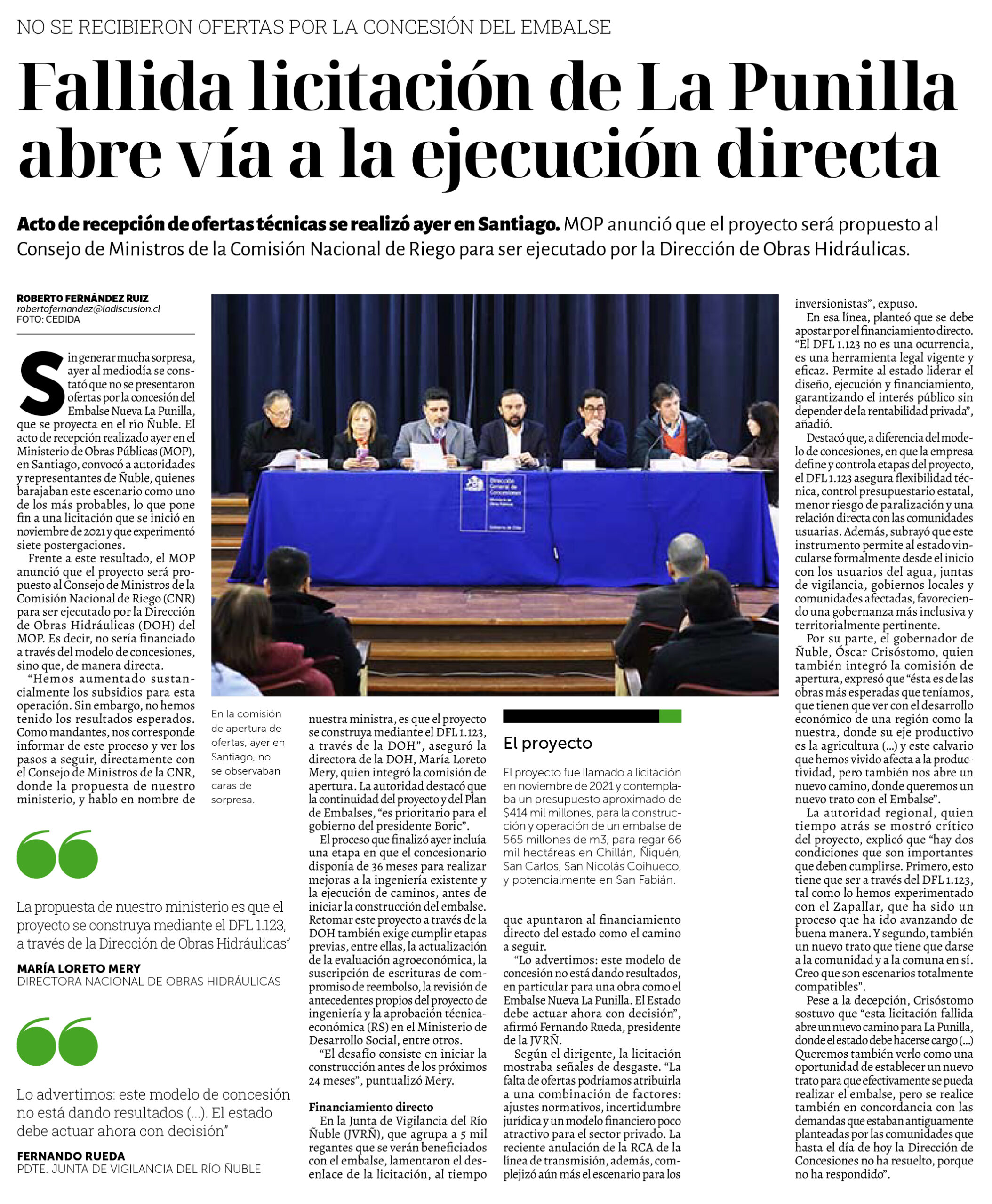 LA DISCUSIÓN – No se recibieron ofertas por la concesión del embalse.