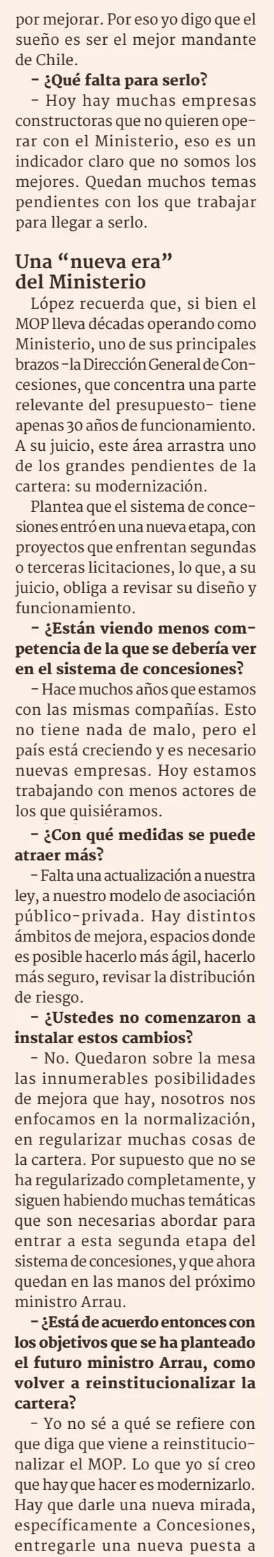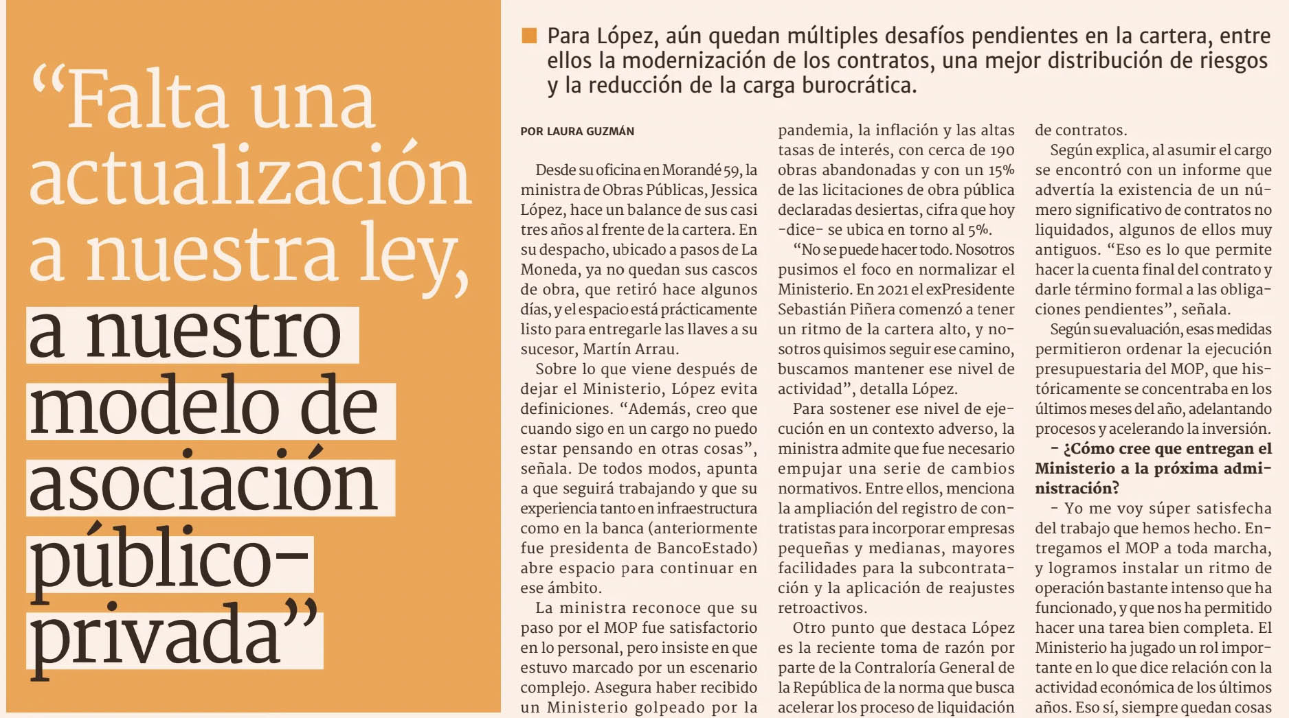 DIARIO FINANCIERO – Para López, aún quedan múltiples desafíos pendientes en la cartera, entre ellos la modernización de los contratos, una mejor distribución de riesgos y la reducción de la carga burocrática