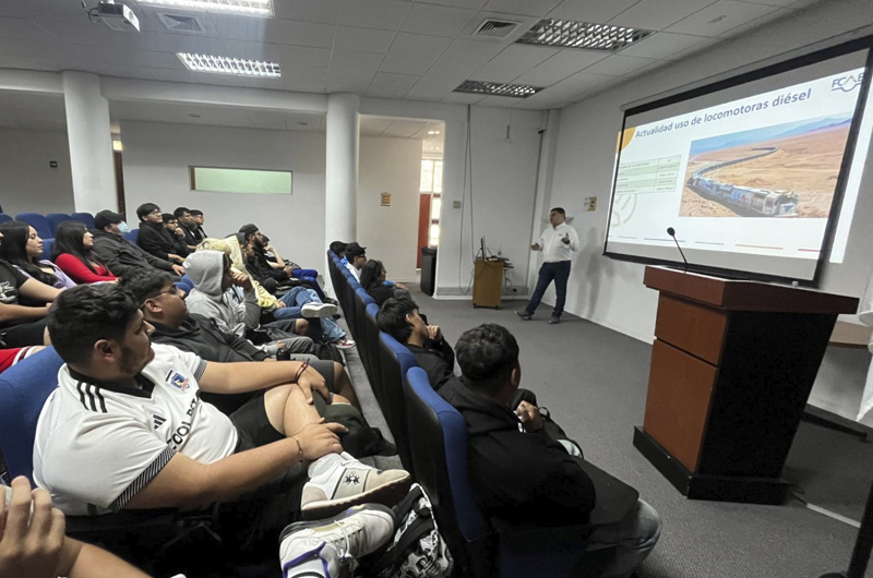 En tanto, en Ceduc UCN, José Adasme, Jefe de la Unidad de Ingeniería de FCAB, marcó un hito al presentar por primera vez los avances de la Locomotora de Hidrógeno a la academia. Dirigida a estudiantes de último año de carreras del área de mecánica, esta charla resaltó el trabajo innovador de Ferrocarril y el potencial de la compañía para transformar la industria.