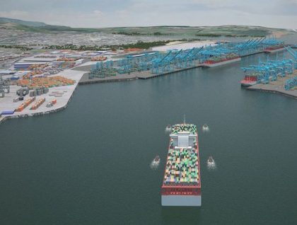 Esa obra dará abrigo a cuatro terminales. Dos de ellos, adosados a este molo y los otros a la costa, permitiendo el atraque de 8 naves tipo Triple E de forma simultánea.