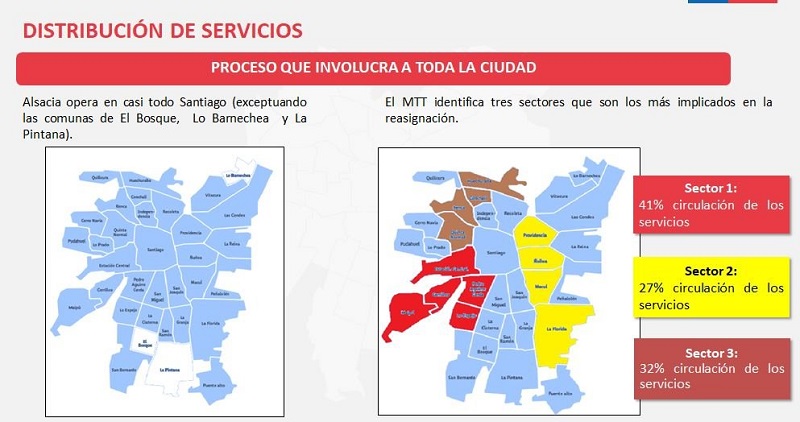 Son un total de 37 de servicios los que actualmente opera Alsacia y que se irán traspasando paulatinamente al resto de las seis operadoras del Transantiago.